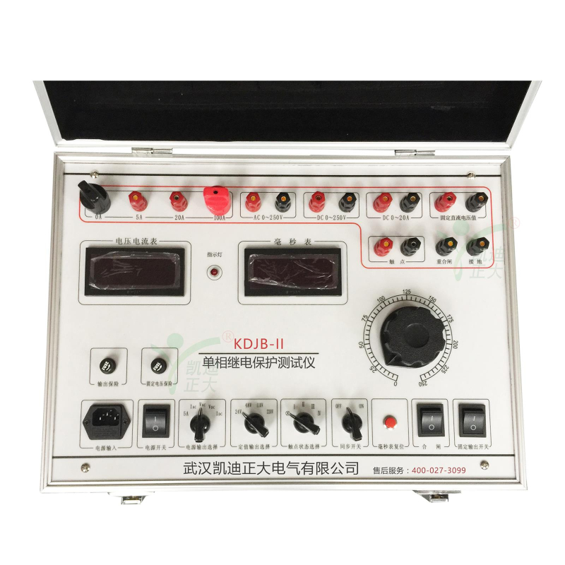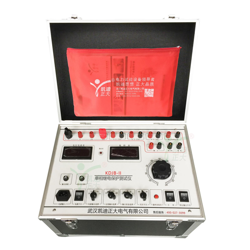 KDJB-II 單相繼電保護測試儀是我公司在原KDJB的基礎(chǔ)上開發(fā)成功的新一代校驗裝置。該儀器內(nèi)部的交直流電壓、電流源采用了最新的電源技術(shù),使儀器在電路設計、器件選型、面板布局、內(nèi)部結(jié)構(gòu)設計上達到國內(nèi)先進水平。該儀器具有功能完善、選材優(yōu)良、測試項目數(shù)據(jù)清晰、操作簡單等優(yōu)點,是電力繼保部門的首選設備。