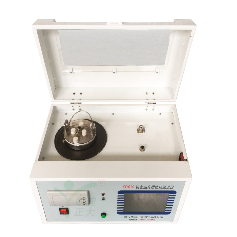 KD610精密油介質(zhì)損耗測試儀是用于絕緣油等液體絕緣介質(zhì)的介質(zhì)損耗角及體積電阻率測試的一體化結構的高精密儀器。內(nèi)部集成了介損油杯、溫控儀、溫度傳感器、介損測試電橋、交流試驗電源、標準電容器、高阻計、直流高壓源等主要部件。其中加熱部分采用了當前最為先進的高頻感應加熱方式,該加熱方式具備油杯與加熱體非接觸、加熱均勻、速度快、控制方便等優(yōu)點。交流試驗電源采用AC-DC-AC轉換方式,有效避免市電電壓及頻率波動對介損測試準確性影響,即便是發(fā)電機發(fā)電,該儀器也能正確運行。內(nèi)部標準電容器為SF6充氣三極式電容,該電容的介損及電容量不受環(huán)境溫度、濕度等影響,保證儀器長時間使用后仍然精度一致。