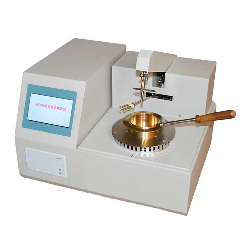 自動開口閃點測定儀是自主開發的具有國內領先水平的高科技產品(可進行油品閃點、燃點檢測)。閃火檢測裝置采用專利技術,利用高性能檢測離子環對火焰導電電阻值突變進行檢測,此檢測方式與火焰導電時離子運動方向一致,擴大檢測面,提高了靈敏度并避免了漏檢、誤檢等現象。