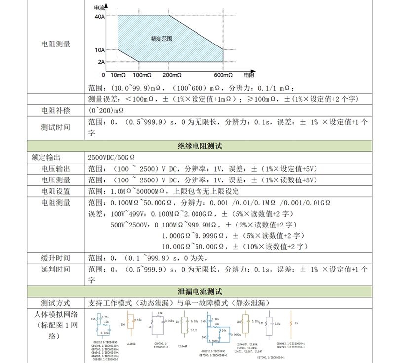 d)接地阻抗:40A/600mΩ,滿足醫療器械行業R<100mΩ的測試要求;