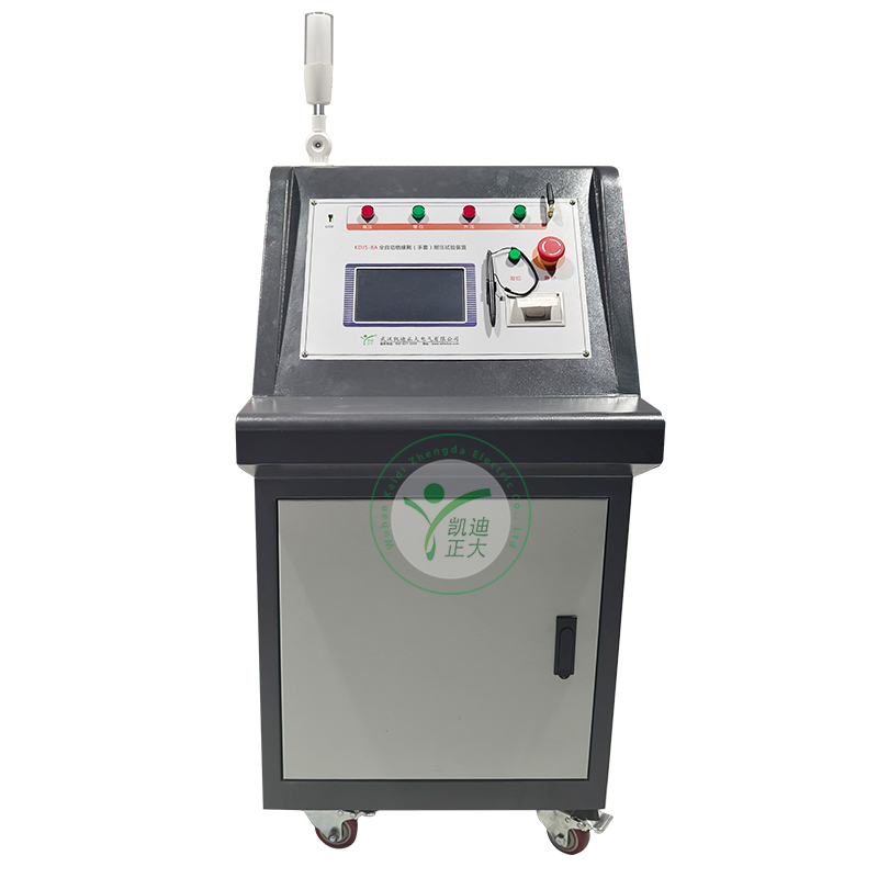KDJS-8A 絕緣桿耐壓試驗裝置是按照國家電力公司關于頒發《電力安全工器具預防性試驗規程》(試行)的通知(國電發[2002]777號)的要求的基礎上,聯合高校武漢理工學院研制生產,并獲得武漢市政府科技創新基金的資金支持。本產品各項指標均符合國標的要求。可以按《電力安全工器具預防性試驗規程》要求對絕緣鞋、絕緣手套等安全工器具進行智能化絕緣耐壓試驗,絕緣靴及絕緣手套耐試驗周期為半年,試驗過程中不允許擊穿,同時絕緣靴絕緣絕緣手套泄漏電流不大于限定值;產品適用于所有與電力相關行業。