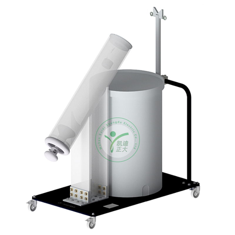 KDZD5550 75/100, 額定電壓為75/100 kV,安裝在裝有容器的手推車上。可以收集把電纜從電纜測試終端中取出時從電纜上滴落的油。
