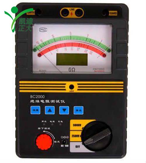 絕緣電阻測試儀又稱數字絕緣電阻測試儀、兆歐表、智能絕緣電阻測試儀等,適于在各種電氣設備的保養、維修、試驗及檢定中作絕緣測試。絕緣電阻測試儀適于在各種電氣設備的保養、維修、試驗及檢定中作絕緣測試。 絕緣阻值分度線均勻清晰、便于準確讀數。 操作簡捷,攜帶方便。 低耗電,用8×1.5V(AA,R6)電池供電,使用時間長。 具有電池容量檢查功能。