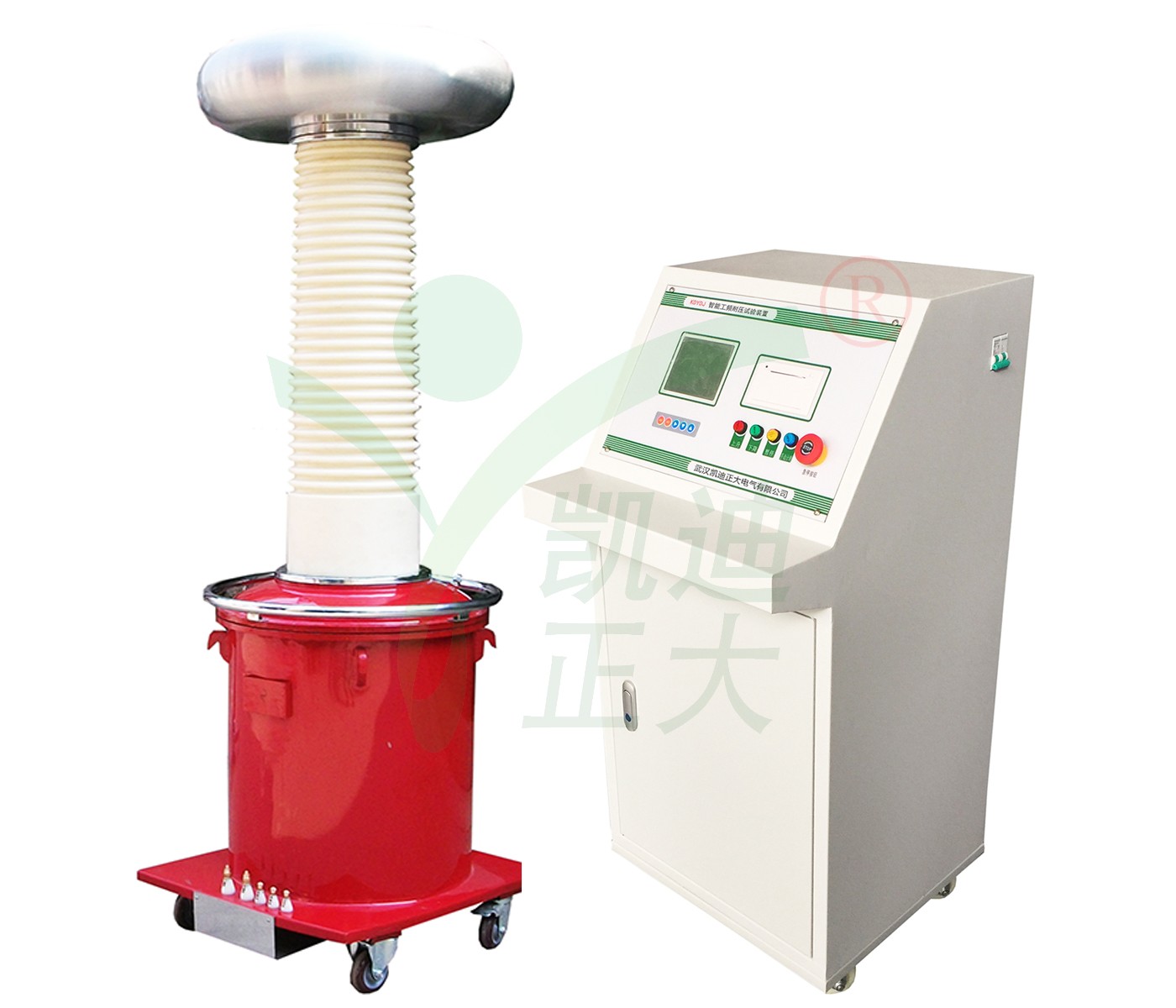 充氣式無局放試驗變壓器工作原理:把電源輸入有過流自動脫扣及防止突發(fā)加壓的零位連鎖裝置的操作箱,經(jīng)自耦調(diào)壓器調(diào)節(jié)電壓輸入KDYDQ工頻耐壓試驗裝置初級繞組,根據(jù)電磁感應原理,在次級(高壓)繞組按其與初級繞組匝數(shù)之比可獲得同等倍數(shù)的電壓幅值-工頻高壓。此工頻高壓可經(jīng)外接高壓硅堆整流及穩(wěn)壓電容器濾波可取得直流高壓,其幅值是工頻高壓有效值的2倍。