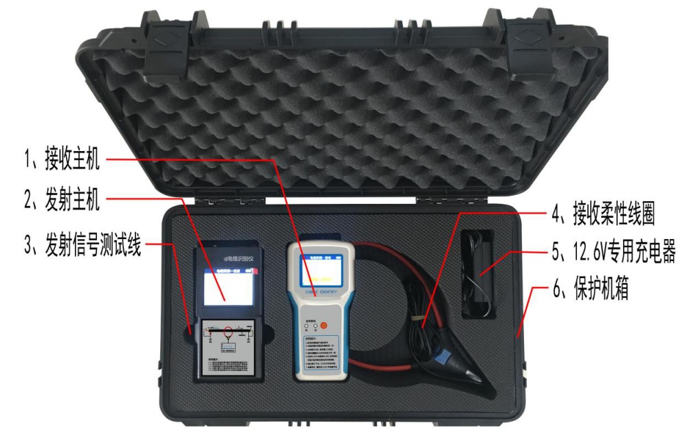 2、該電纜識別儀與常規(guī)的識別儀不同,采用了最新的通信技術,在發(fā)射端采用單片機技術對發(fā)射信號進行編碼、功率驅動,將信號耦合到電纜上;接收機中的單片機對接收的相位編碼信號解碼和相位識別。根據(jù)目標電纜上的信號相位特征的少有性將目標電纜從一大束電纜中識別出來。因此工作性能可靠,對超長電纜也能做到準確判別,是一種輕小型、緊湊型、便攜式儀器。適用于各種類型的高低壓動力電纜。