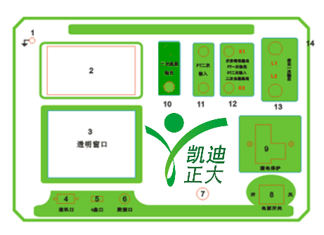 13.CT一次輸入口    14.機(jī)箱右側(cè)電源輸入,~220V(±10%)