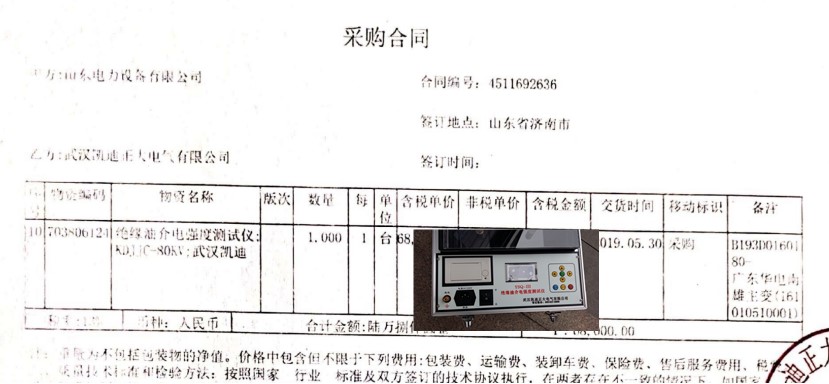國網(wǎng)山東電力公司采購我司KDJJC-80KV絕緣油介電強(qiáng)度測(cè)試儀