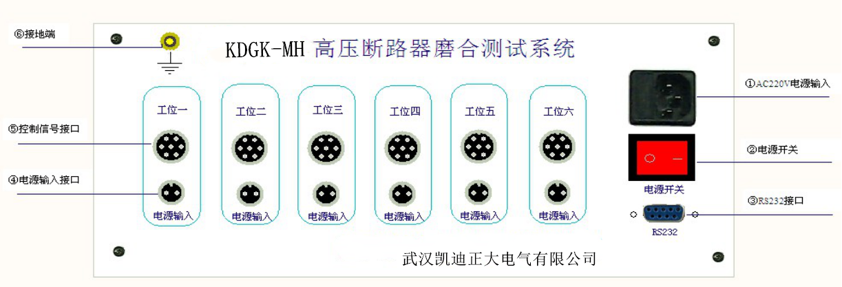KDGK-MH高壓斷路器磨合測試系統(tǒng)控制面板以及電源信號接口說明