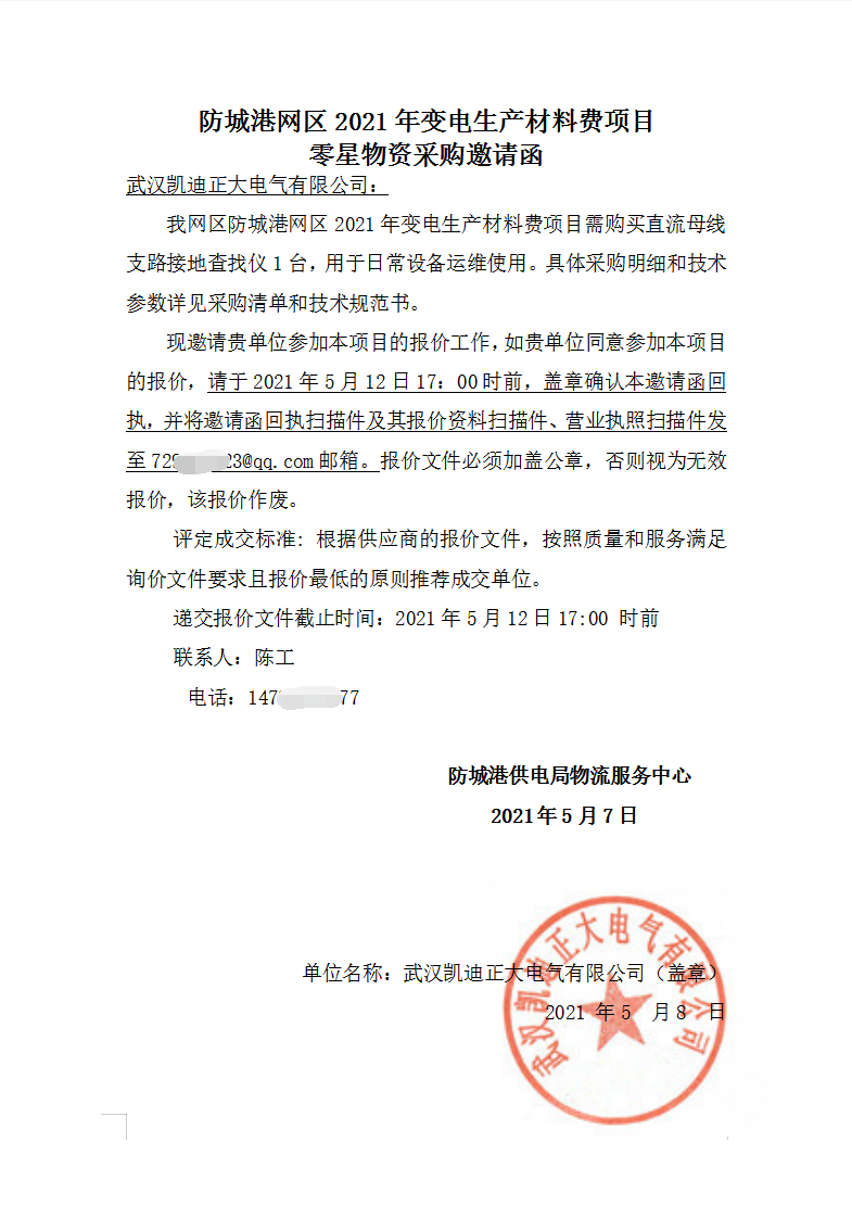 南網(wǎng)防城港網(wǎng)區(qū)2021年變電生產(chǎn)材料費項目邀請函