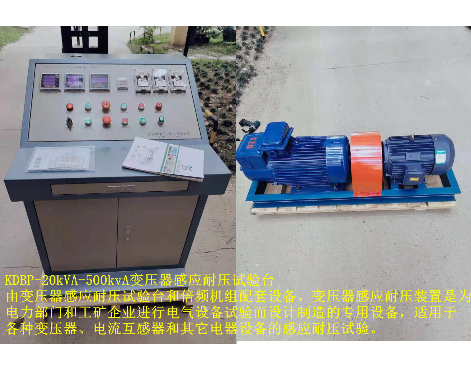 這次采購的KDBP-20kVA變壓器感應(yīng)耐壓試驗(yàn)臺由變壓器感應(yīng)耐壓試驗(yàn)臺和倍頻機(jī)組配套設(shè)備。變壓器感應(yīng)耐壓裝置是為生產(chǎn)電力部門定制的各種變壓器的感應(yīng)耐壓試驗(yàn)出廠檢測,倍頻感應(yīng)機(jī)組還可以給工礦企業(yè)進(jìn)行電氣設(shè)備試驗(yàn)而設(shè)計(jì)制造的專用設(shè)備,適用于各種變壓器、電流互感器和其它電器設(shè)備的感應(yīng)耐壓試驗(yàn)。