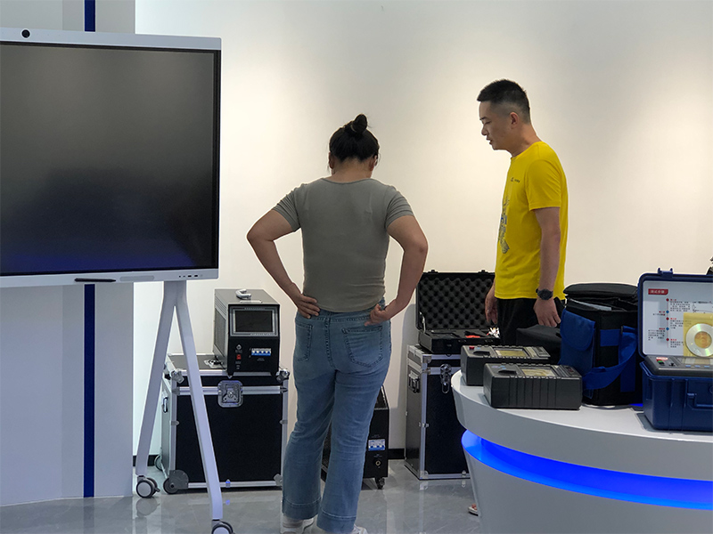 在我公司趙總與王工的陪同下,安徽某電力公司代表首先參觀了寬敞明亮的設(shè)備展廳。這里陳列著各類電力檢測(cè)設(shè)備,趙總與王工對(duì)展廳陳列的設(shè)備做了大致的講解。并對(duì)三相繼電保護(hù)測(cè)試儀、變壓器容量測(cè)試儀及變頻抗干擾介質(zhì)損耗測(cè)試儀進(jìn)行了細(xì)致介紹。