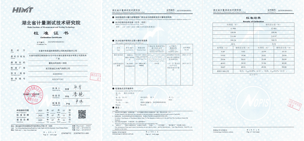 2025年7月16日,湖北省計量測試技術(shù)研究院正式簽發(fā)了編號為2025DW008600361的校準(zhǔn)證書,完成了對武漢凱迪正大電氣有限公司研制生產(chǎn)的KDZD886C蓄電池充放電一體機的計量校準(zhǔn)工作。
