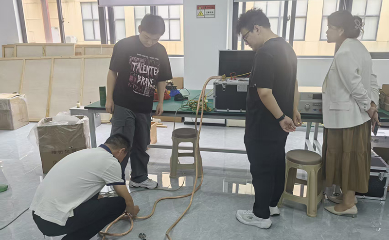 第二站:生產(chǎn)車間——見證制造匠心隨后,技術(shù)人員陪同嘉賓走進(jìn)生產(chǎn)車間。我們向來賓簡(jiǎn)要說明了高壓諧振電抗器、超高壓耐壓測(cè)試儀等產(chǎn)品的組裝與調(diào)試。希望通過呈現(xiàn)有序的生產(chǎn)現(xiàn)場(chǎng)和嚴(yán)謹(jǐn)?shù)淖鳂I(yè)流程,讓代表團(tuán)感受到凱迪對(duì)產(chǎn)品品質(zhì)的切實(shí)追求與保障能力。